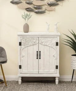 Luxen Home LuxenHome Farmhouse White Wood 2-Door Accent Storage Cabinet