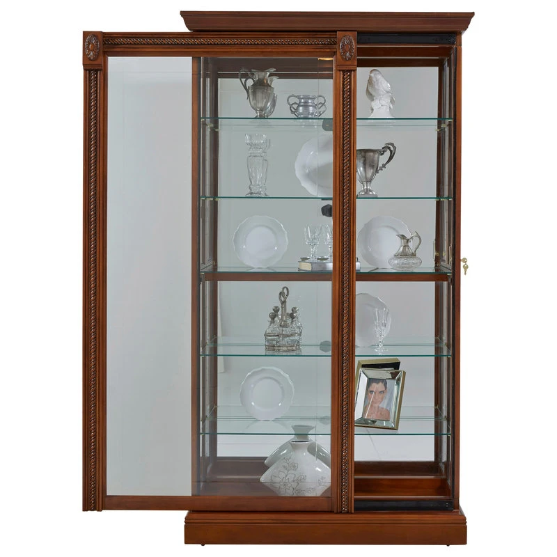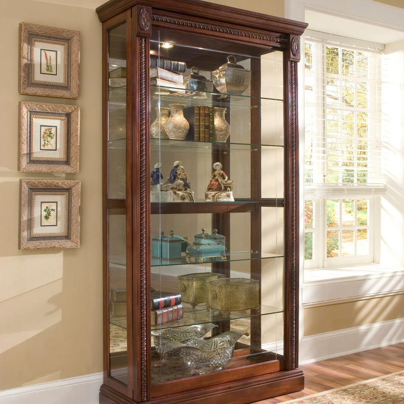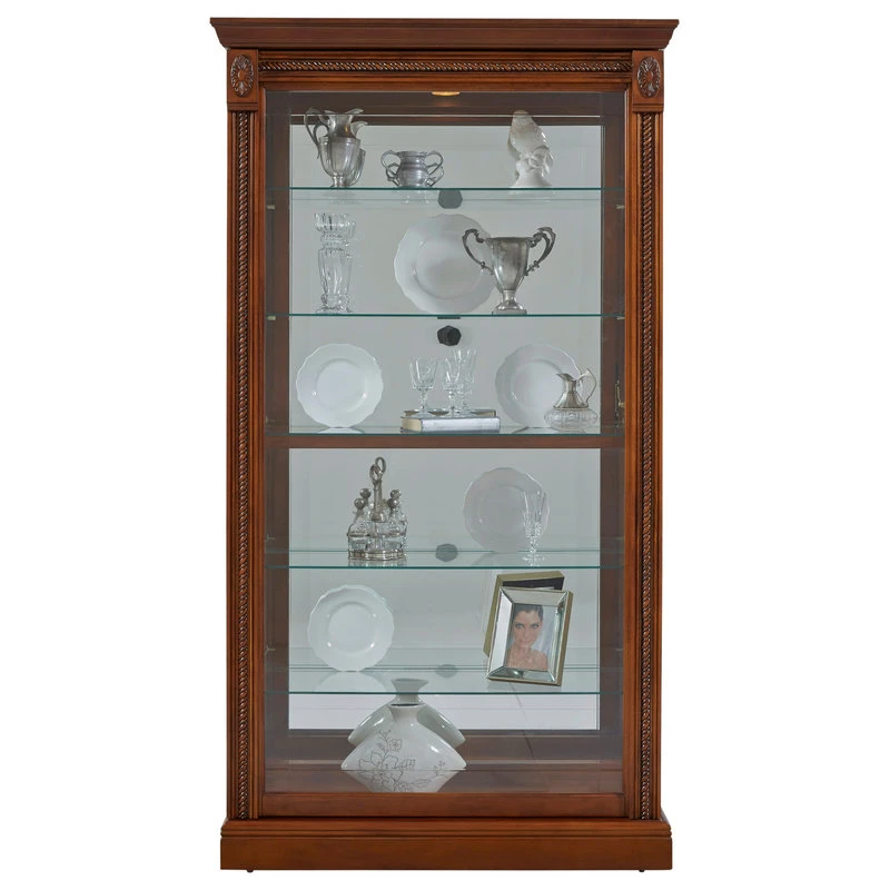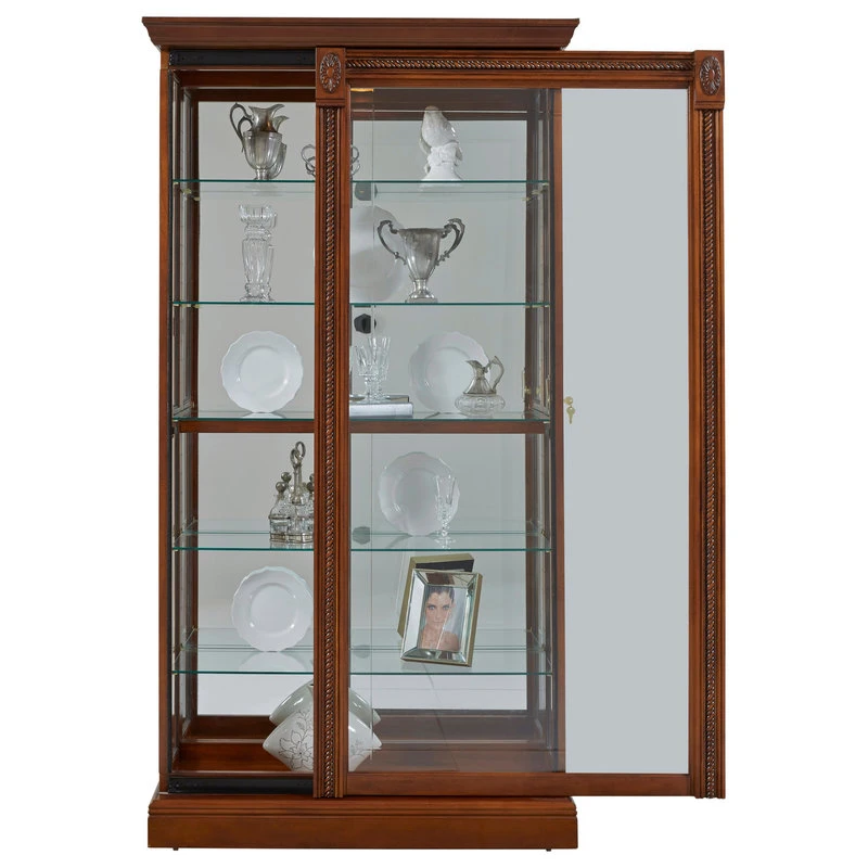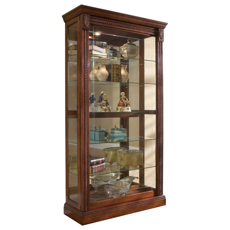 The Cher Display Case offers a stylish space to display your trinkets and treasures. Clean lines, sturdy construction and a natural finish give this curio a handcrafted look. Ornate details include rope twist mouldings and decorative medallions. Place the Durham in your game room, hallway or living room for an accent that stands the test of time.