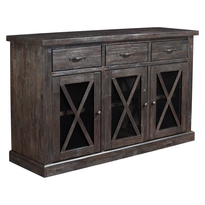 With a beautiful gray distressed salvaged wood finish, bring rustic elegance to your dining room with the Newberry Dining Sideboard. Using sustainable wood resources, this product is constructed with Acacia wood. Designed with hosting in mind, this server provides extra storage and style. Complete the room setting with the beautiful, matching table, chairs, & dining bench.