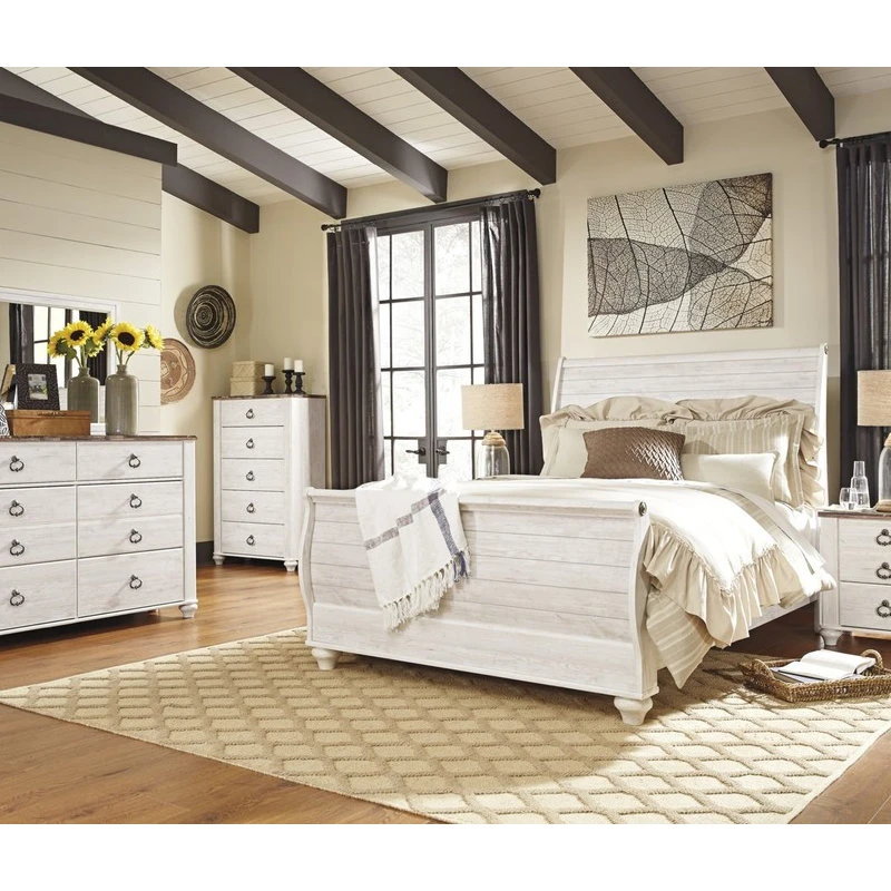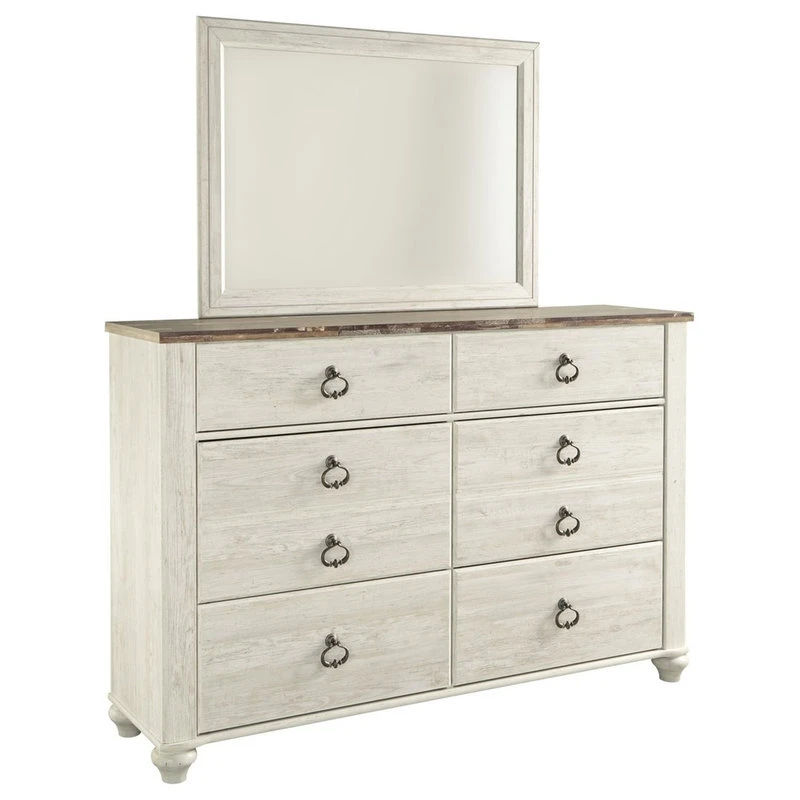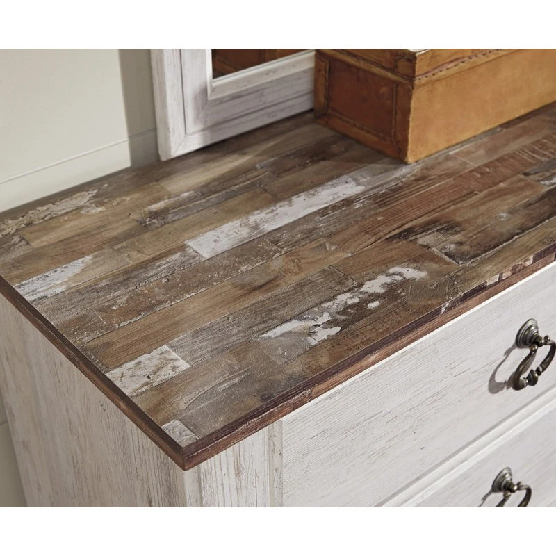 The Willowton dresser is the ultimate statement piece for your coastal cottage or shabby chic inspired retreat. Whitewashed finish on the drawers and sides is wonderfully easy on the eyes. Paired with the unique plank-style top, it’s a driftwoody look that has our minds drifting away to beachy-keen escapes.