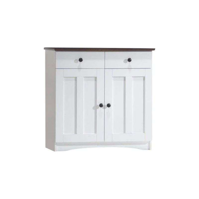 Baxton Studio Lauren White And Dark Brown Buffet Kitchen Cabinet, 2 Doors And 2 Drawers