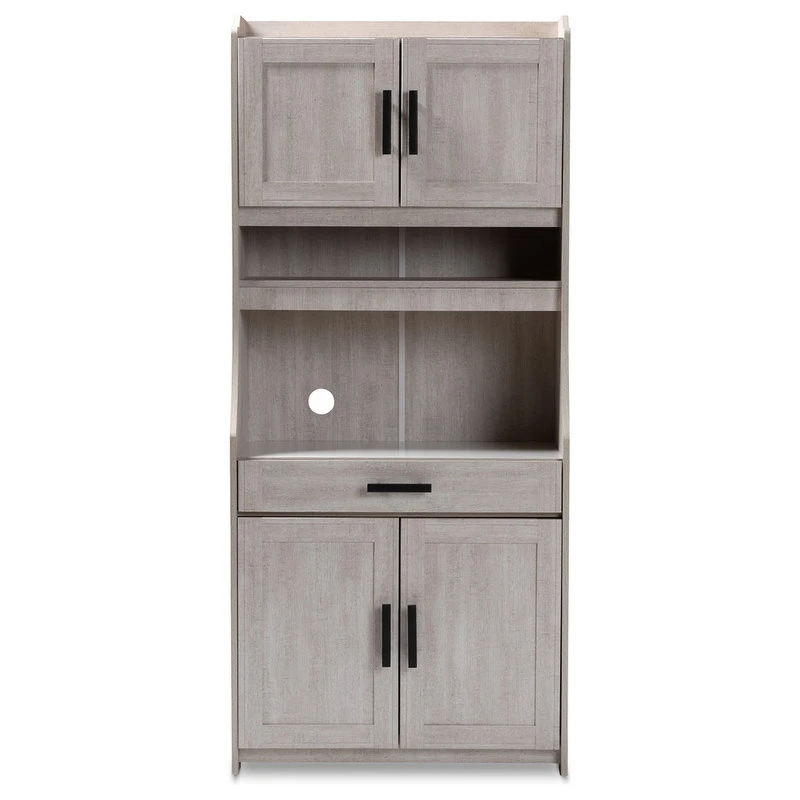 Baxton Studio Louise Contemporary 6-Shelf White-Washed Wood Kitchen Storage Cabinet