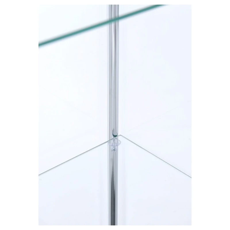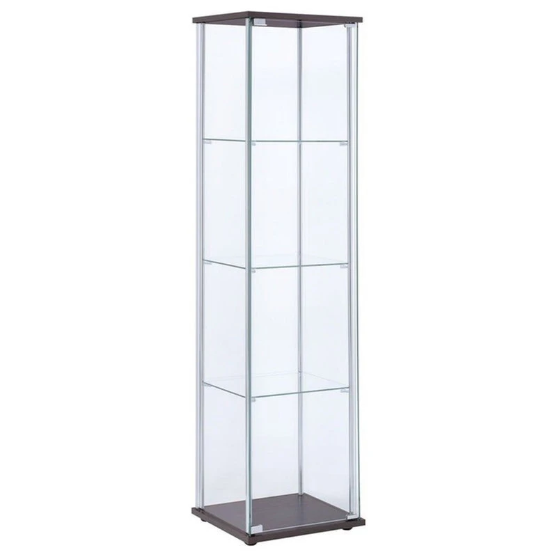 Go for a fresh new look with artistic influence. This curio cabinet turns design on its head with a new twist on tradition. Perfect for transitional spaces, its chrome support beams, and cappuccino finish base and top nicely complement glass shelving and exterior panels. Three shelves clear the way for showing off your best decor. Upgrade a stylish living space with this fabulous find. This Bowery Hill Contemporary Espresso 4 Shelf Glass Curio Cabinet will be a undoubtedly a great addition to your home décor. Add a touch of elegance to your home setting. The modern design showcases for a timeless aesthetic that goes with a wide range of decor themes. It has a simplicity and a flare all at once, as if inspired by the simple gown that is confident in taking up its space.