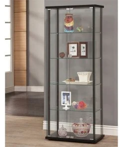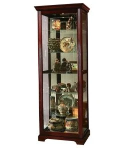 Perfectly scaled for entryways in apartments, condos and other smaller spaces, this lighted Bowery Hill display cabinet brings ambiance and style to any space. Clean design lines are adaptable and styled to join existing furnishings. Details like bronze tinted glass, beveled glass, an adjustable shelf, pewter hardware, and a rich chocolate finish all adorn this space-saving curio cabinet.