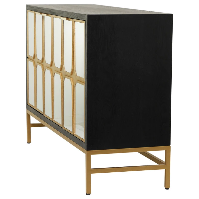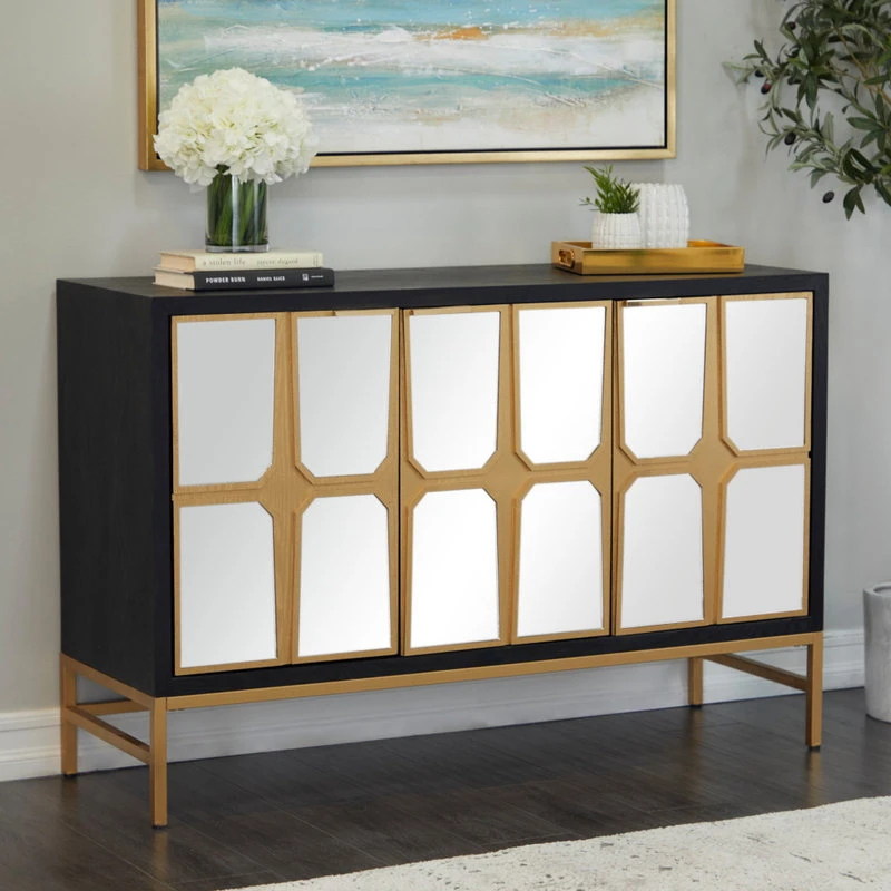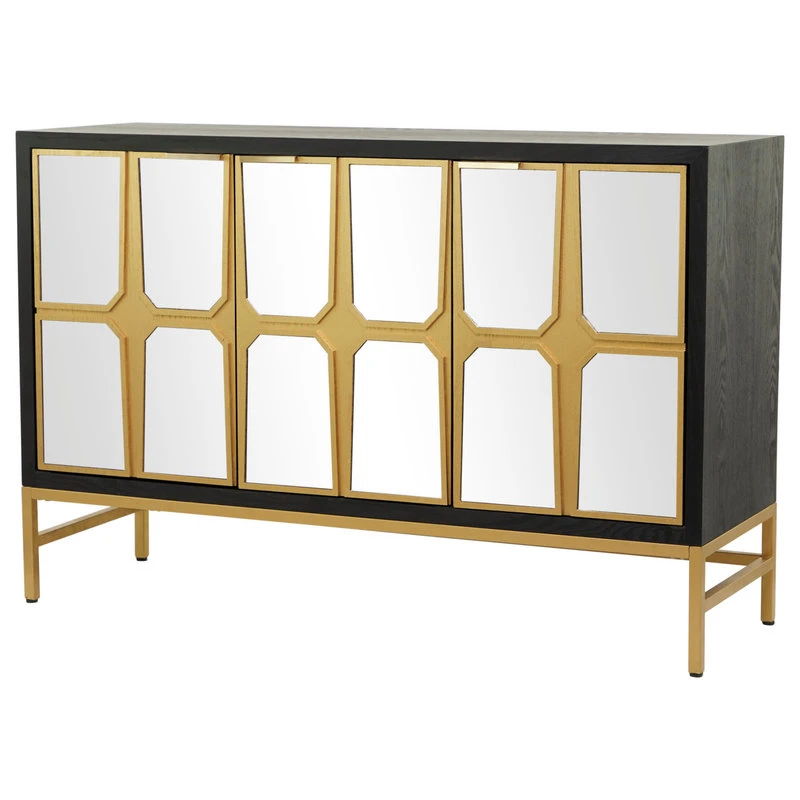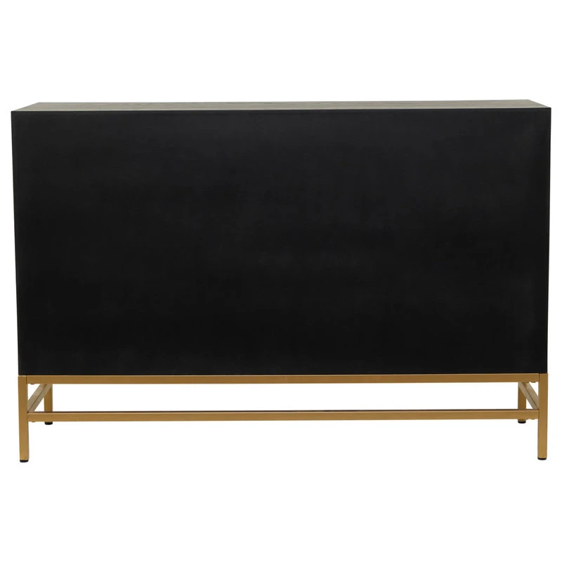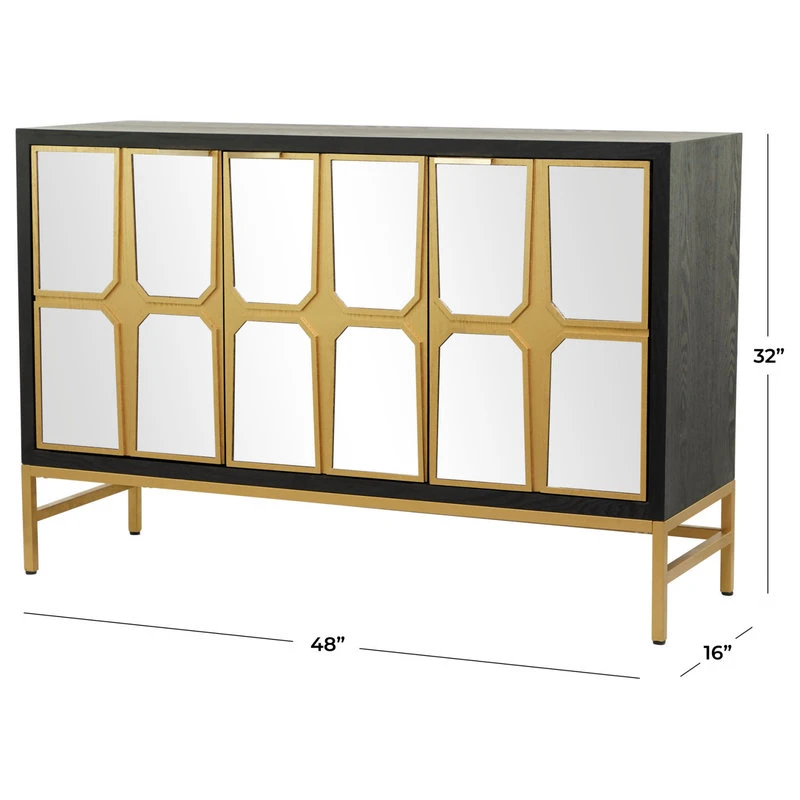 SKU: 561990 Category: Buffets & Sideboards Tags: 3 door decorative cabinet, Black cabinet, Black rectangular cabinet, Black wood cabinet, Buffet, Cabinet, Decorative Cabinet, Drawers, Dresser, Glam cabinet, Glam decorative cabinet, Sideboard, Storage, Wood cabinet, Wooden decorative cabinet
