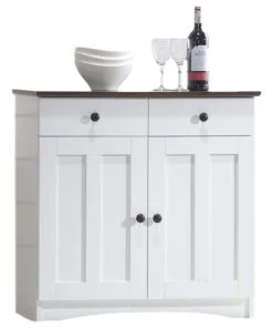 Baxton Studio Lauren White And Dark Brown Buffet Kitchen Cabinet, 2 Doors And 2 Drawers