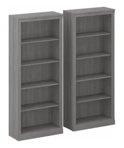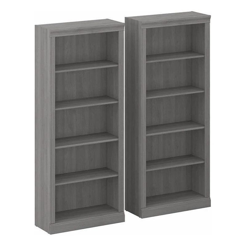 Enjoy the refined elegance of timeless traditional styling while showcasing your favorite books and decorations with the Bush Furniture Saratoga Tall 5 Shelf Bookcase Set. A perfect choice for virtually any office or private study, these matching Bookcases both feature three adjustable shelves for flexible storage space and two fixed shelves for strength and stability. Each shelf supports up to 25 pounds, so you can organize your personal library and display larger items with confidence. Hardware is included to safely anchor the 30W x 13D x 72H bookshelves to a wall. The tall bookshelf set’s classic appearance is enhanced by decorative top, base and side rail detailing. This Tall Bookcase Set has been tested to meet ANSI/BIFMA standards for safety and performance and is backed by the Bush Furniture 10 Year Manufacturer’s Warranty. See the full collection for coordinating items available.