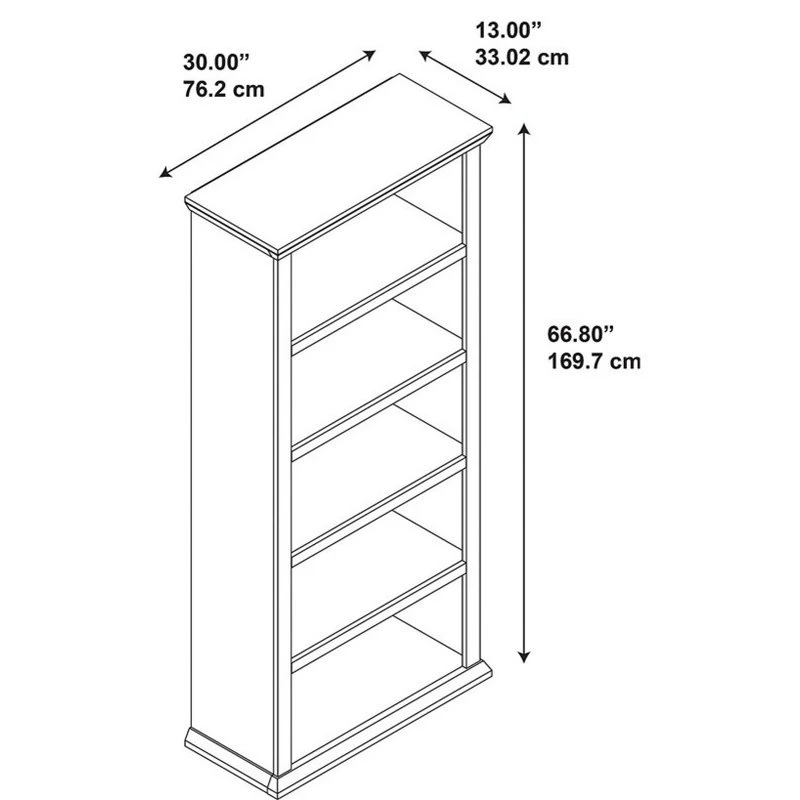 The Bush Furniture Yorktown 5 Shelf Bookcase in Antique Cherry is an attractive and functional addition to your home office. Display photos and memorabilia and store your books in one convenient place. The 5 Shelf Bookcase comes with two fixed shelves for stability and three adjustable shelves so you can put special items where you want them most. With beveled edges and a distressed Antique Cherry finish, it coordinates perfectly with other Yorktown Collection pieces to create a beautiful home office. The bookshelf also works as a standalone piece in any living space. See the full Yorktown Collection for all available coordinating items. Backed by the Bush Furniture 1 Year Manufacturer’s Warranty, the 5 Shelf Bookcase meets ANSI/SOHO quality test standards for performance and safety. Materials: Engineered wood and durable laminates