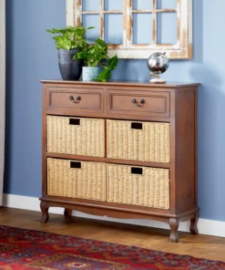 Zimlay Traditional Wooden Chest With Woven Seagrass Baskets 96379