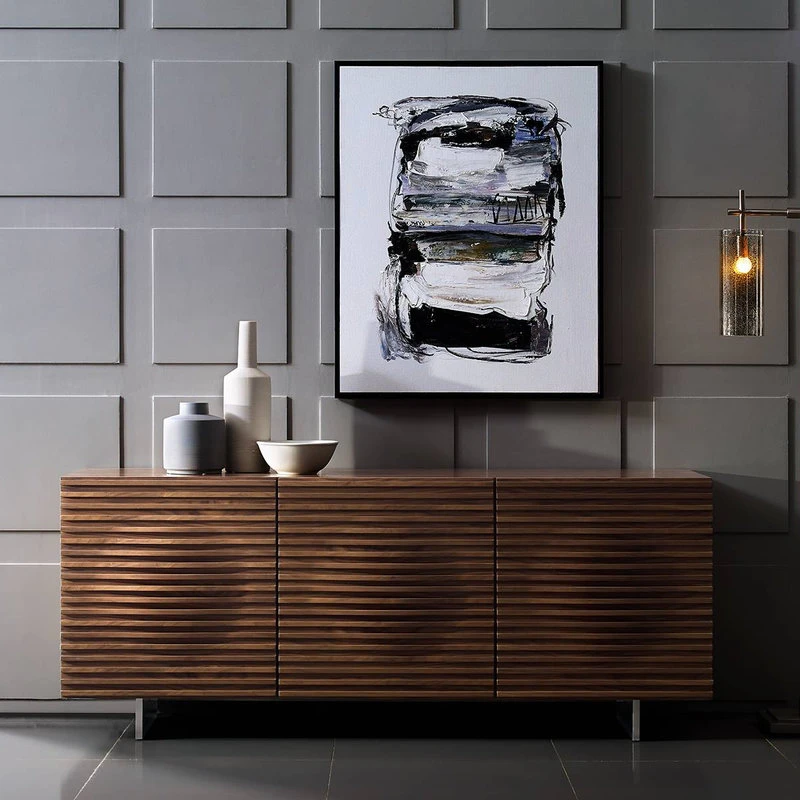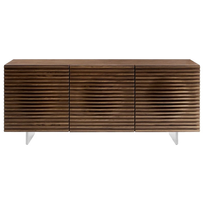 The MOON Walnut Veneer Buffet by Casabianca Home. Features clean and modern lines adding a sophisticated look and modern edge to any room. Quality that is made to last.