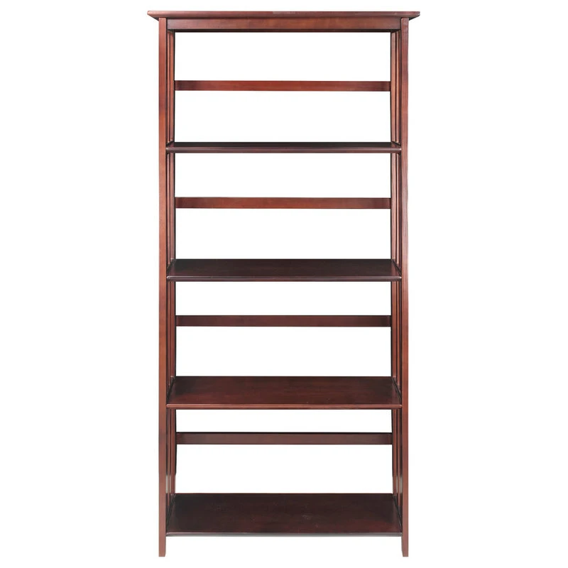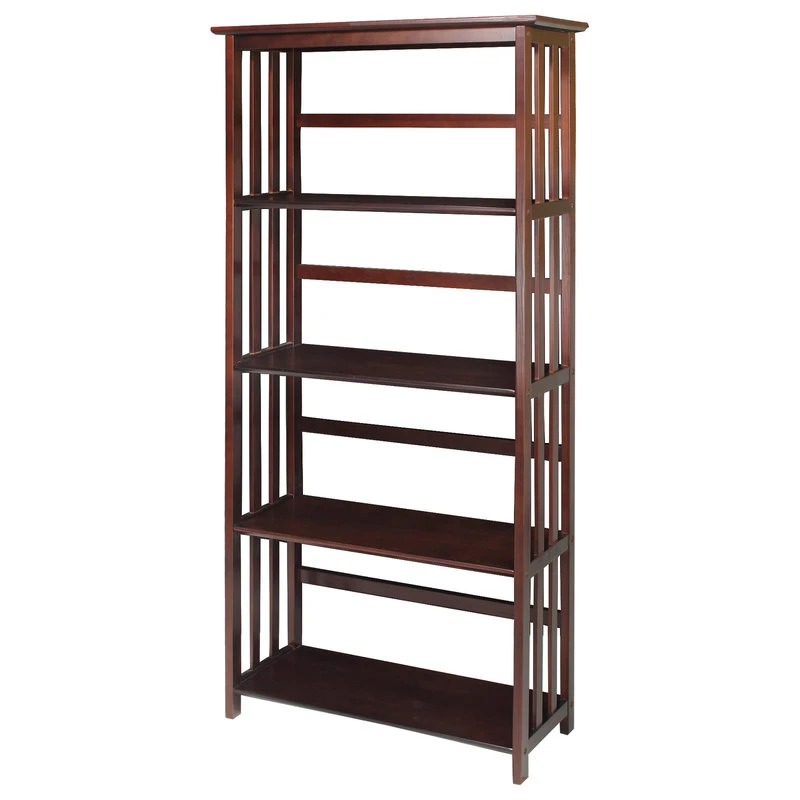 Made from solid wood and finished in a bold espresso/walnut color, this contemporary five-tier bookcase is great for adding structure to a bedroom, living room or den while creating ample storage space.