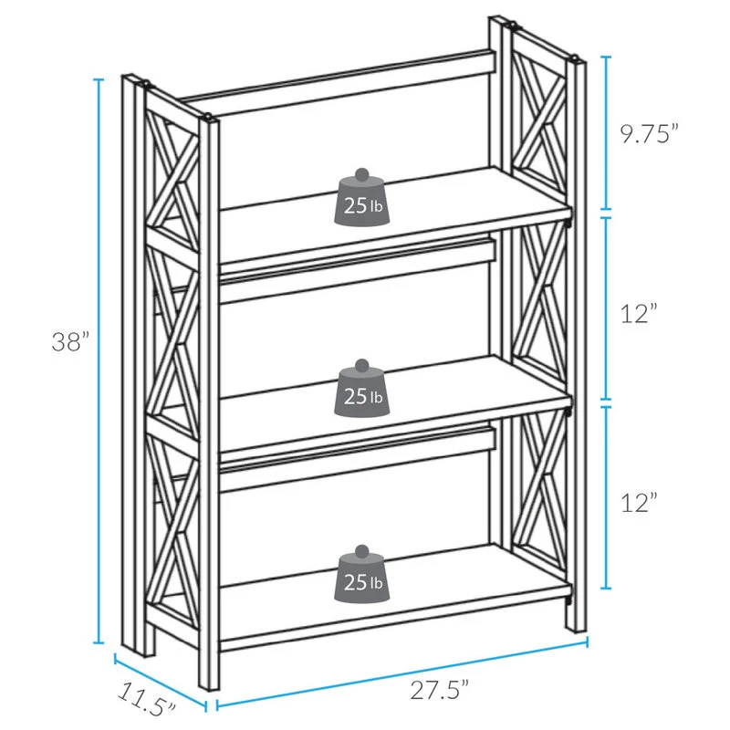 Sturdy and stackable, the X-Design 3-Shelf Folding Bookcase is ideal for any storage. Stackable design allows your storage and home design to grow when you need them to. Effortless foldable engineering means you can transport or store with ease. Constructed from solid wood for lasting beauty.