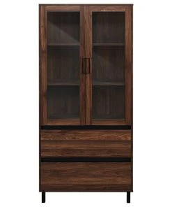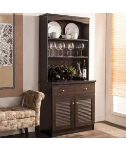 Wholesale Interiors Agni Buffet And Hutch Kitchen Cabinet, Dark Brown