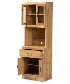 Wholesale Interiors Laurana Modern Oak Brown Finished Wood Kitchen Cabinet And Hutch