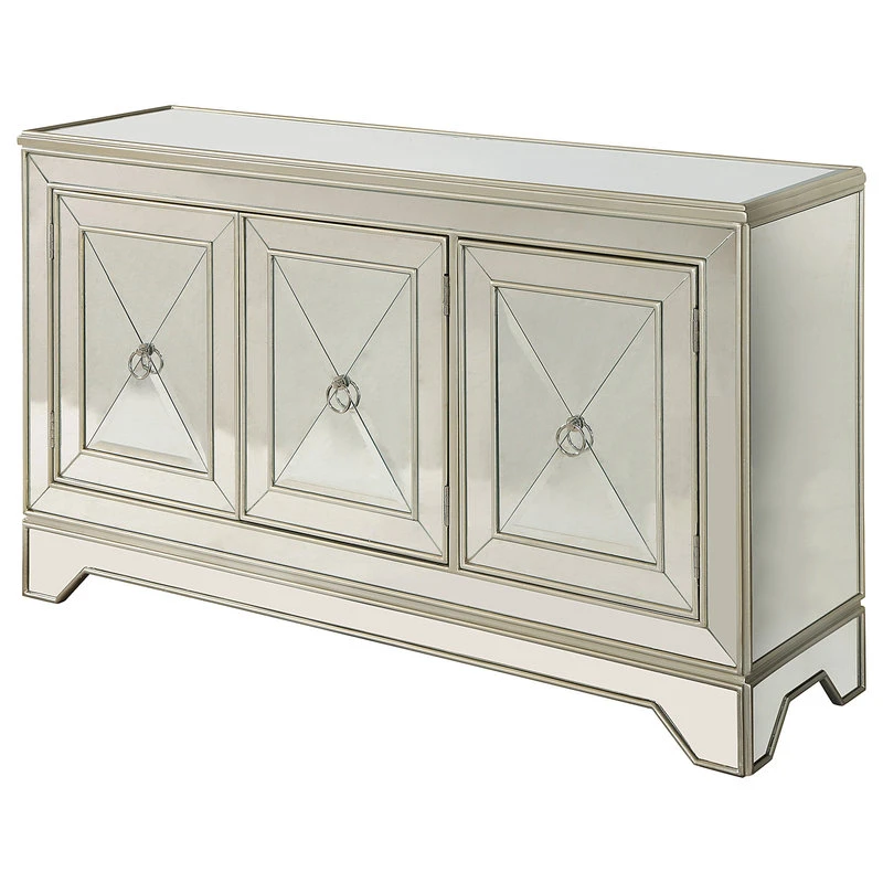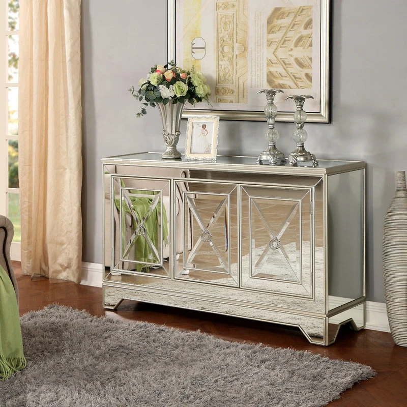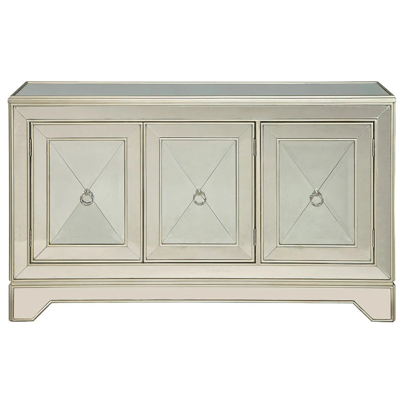 Beautify your dining area with the 3-Door Credenza. This buffet keeps everything handy by stowing serveware and linens within the cabinets, but it also functions as a striking decorative accent. The leaves a lasting impression by combining traditional ideals with modern forms.
