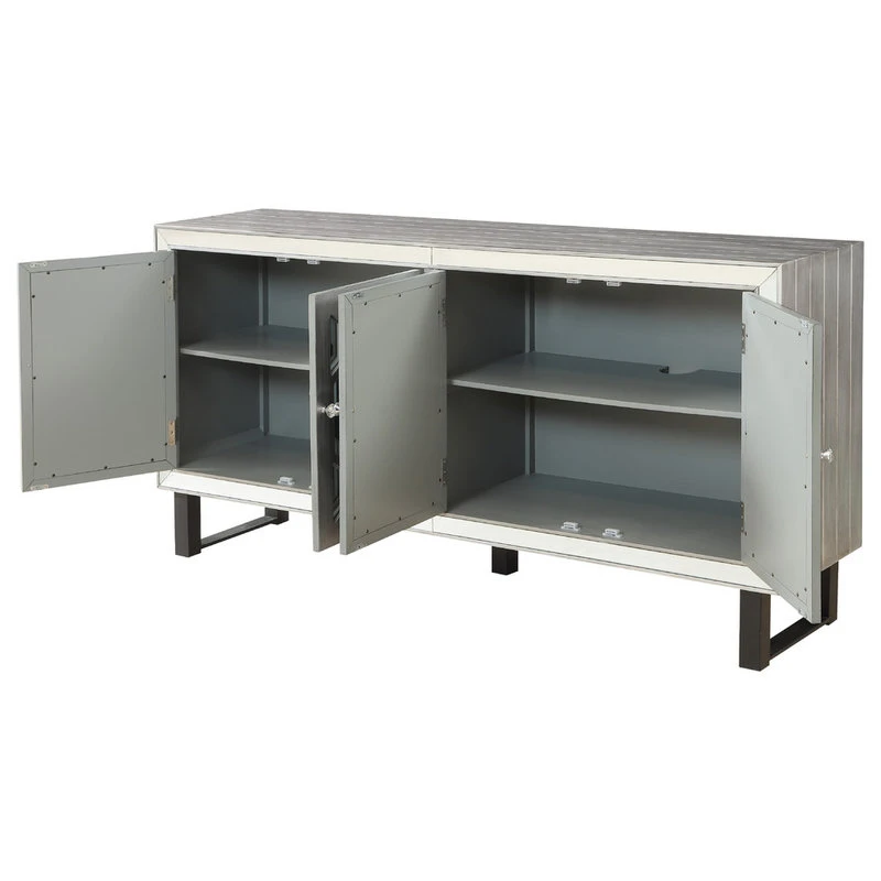 SKU: 22584 Category: Buffets & Sideboards Tags: 4-door, Accent, Cabinet, Console, Credenza, Gray, Grey, Media, Metallic, Powder, Side, Table, Textured