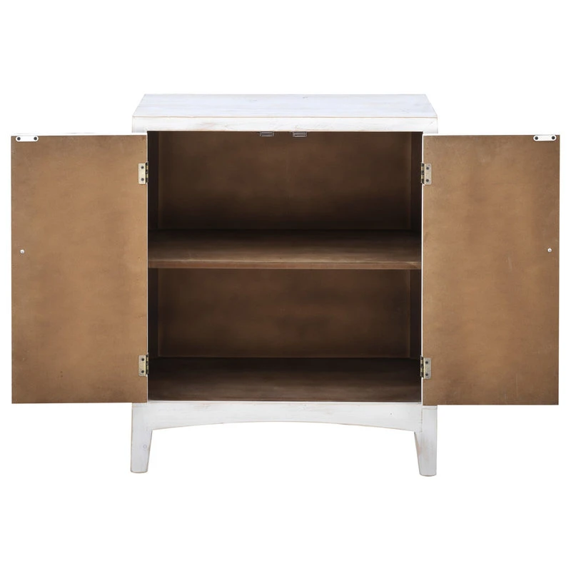 Our Tropics White Wash finish gives this Cabinet that fresh beachy appeal that will look so good in your sunroom or kitchen, whether you are near the ocean or just love that easy-going coastal vibe! Leaves carved in a high relief cover the two door fronts, artistic, yet ever so subtle. With a single fixed shelf inside for storage, this Cabinet is an excellent choice that you will enjoy for years to come!