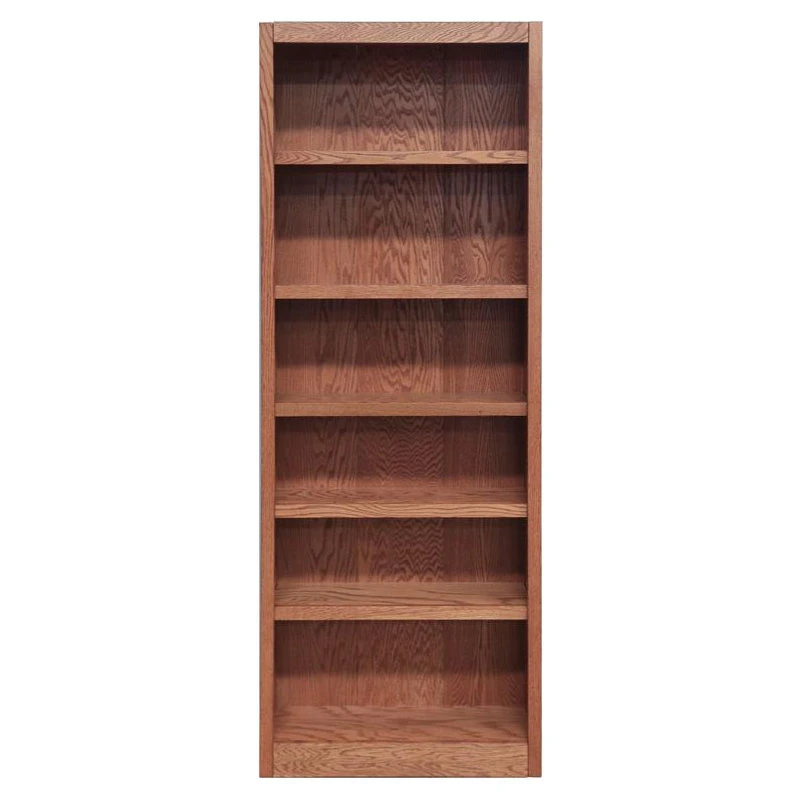 The Concepts in Wood 6 shelf single wide Bookcase has a beautiful 10 step finish on wood veneer that really sets this bookshelf apart from the rest and utilizes an environmentally friendly zero VOC emissions finish process. This is a piece of furniture using solid wood trim pieces and wood veneer panels versus all the paper laminate varieties out there. Very durable with 70lb. weight capacity per shelf. 4 adjustable shelves allow you to customize the storage space to accommodate a variety of book sizes and 2 fixed shelves provide structural reinforcement. A dowel and cam lock assembly design ensures a strong durable bookcase. Wood elements are sourced in the USA and assembled in Mexico. This versatile storage bookcase is ideal for home or office use, laundry, bedroom, kitchen, garage or any other room. Ready for assembly.