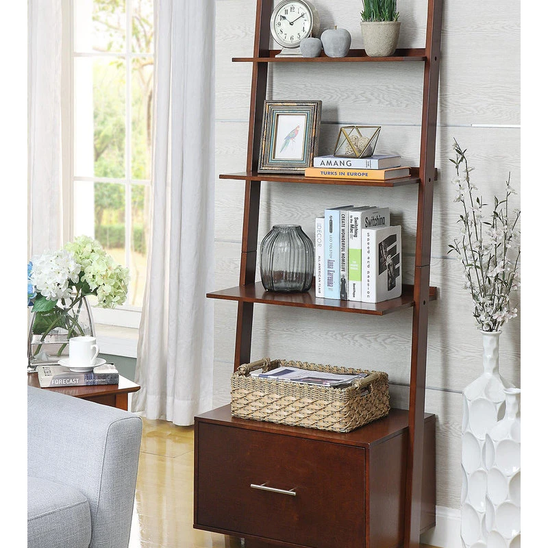 The American Heritage Ladder Bookcase with File Drawer from Convenience Concepts is a great addition to any home or office. Featuring four spacious tiers for books and collectibles, as well as a file drawer at the bottom, you’ll have space to clear off your desk. And since it’s made of wood. it’s also sturdy and built to last for many years of enjoyment. Bring it home today to complete your office or den.