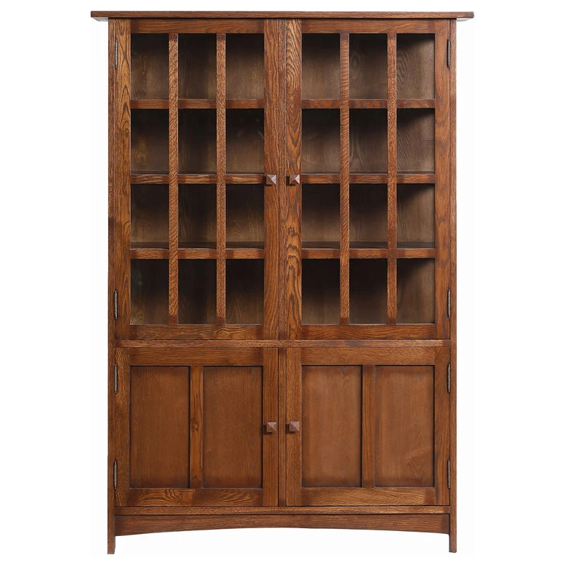 This is an Arts and Crafts Mission Oak China Cabinet or a Bookcase made with solid white Oak. This is a high quality piece, very solid, no veneer, made with alot of expertise and attention to details as the orignal 100 year old Stickley piece were made and is perfect for an Arts and Crafts collector and style of house. It has three shelves.
