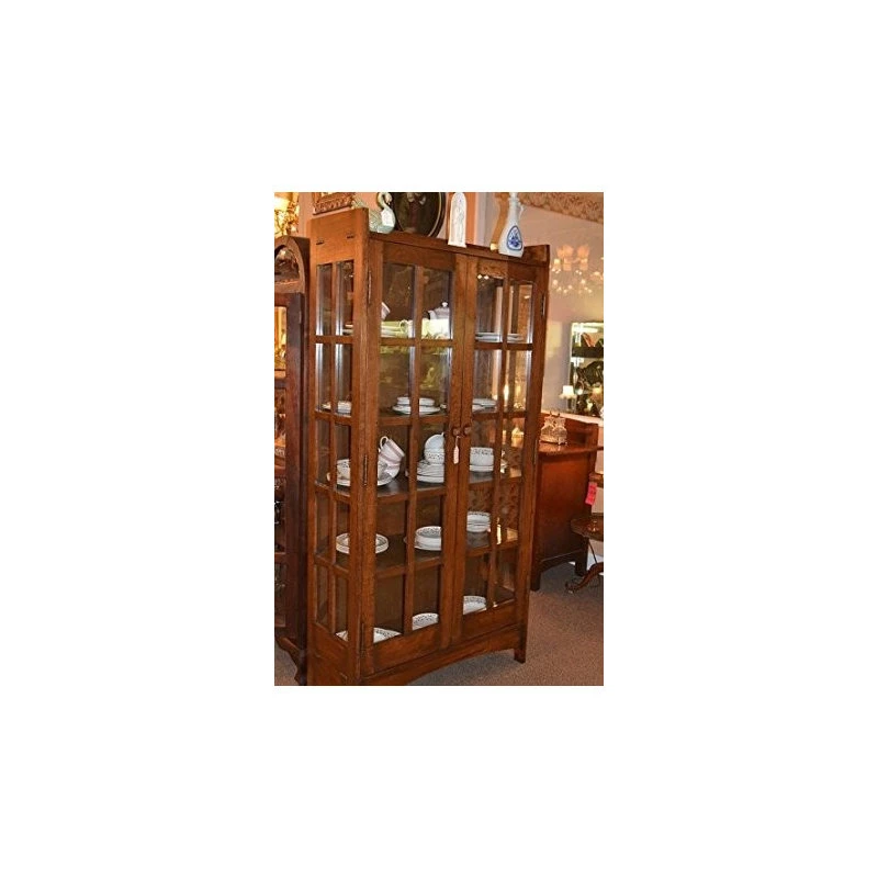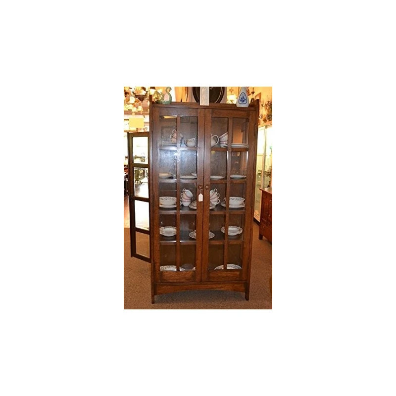 This is an Arts and Crafts Mission Oak China Cabinet or a Bookcase made with solid white Oak. This is a high quality piece, very solid, no veneer, made with alot of expertise and attention to details as the orignal 100 year old Stickley piece were made and is perfect for an Arts and Crafts collector and style of house. It has four shelves and if you include the base it has 5 shelves.