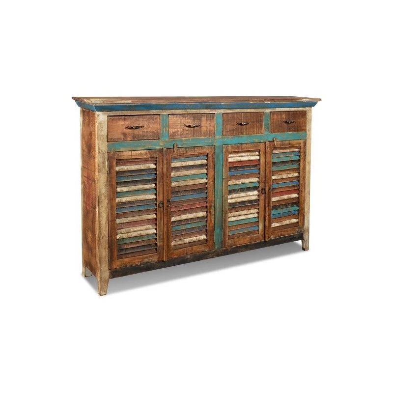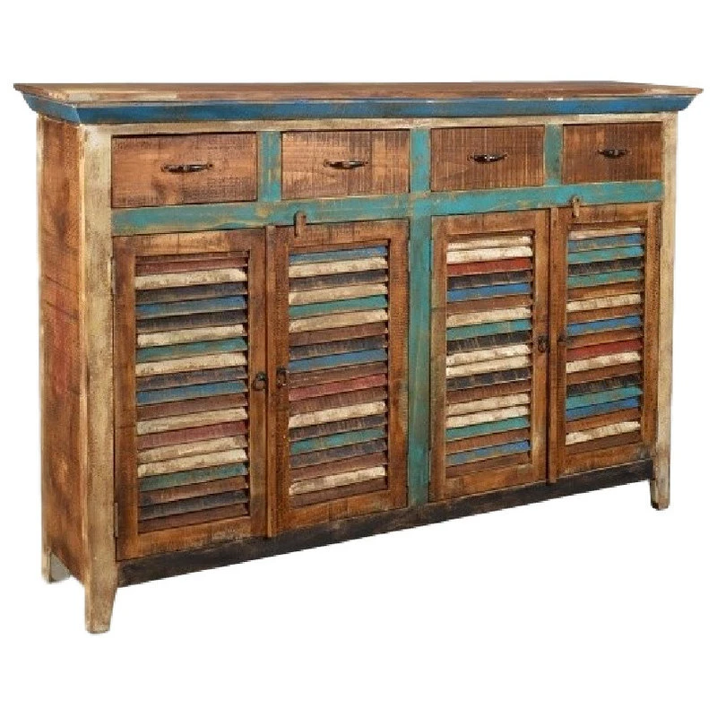 La Boca Collection: Distressed and brightly painted wood furniture.