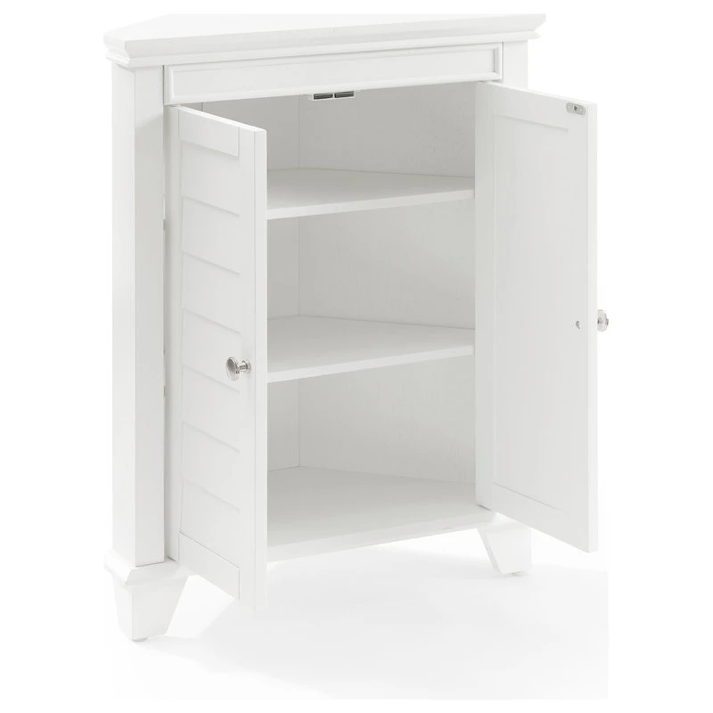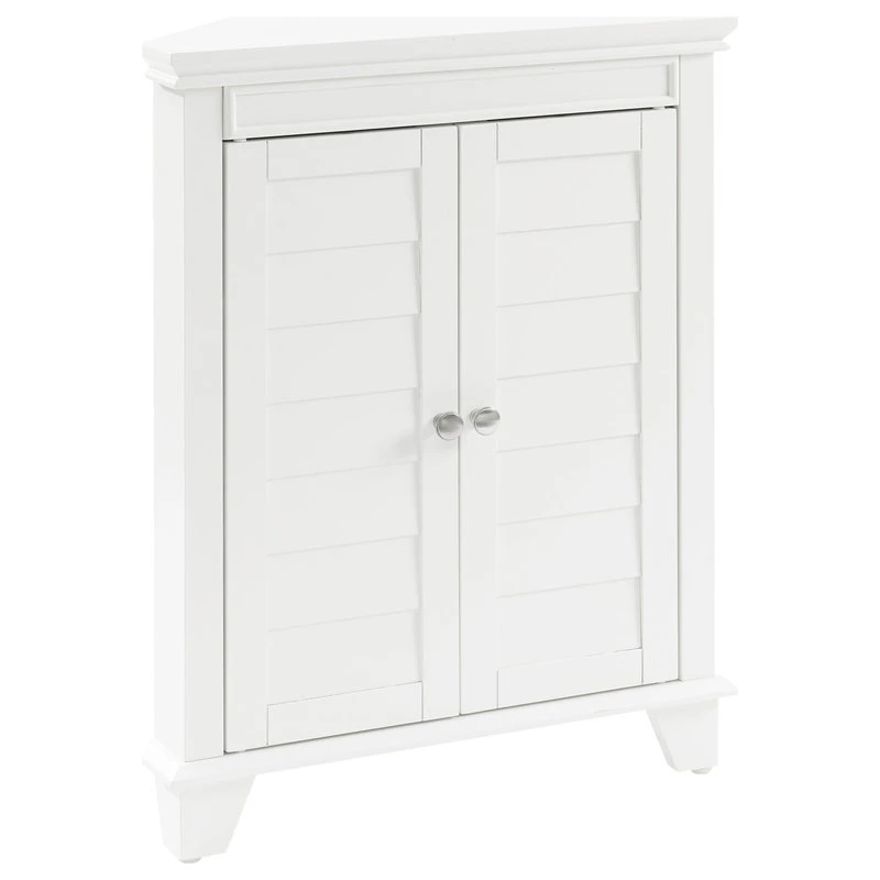 The Lydia Corner Cabinet will be a welcome addition to your home with its space-saving design. Easily nestled in the corner of your bathroom or entryway, this cabinet has two adjustable shelves inside, just right for small items like hand towels and toiletries. The Lydia Corner Cabinet features doors with a classic louvered look, bringing cottage charm wherever it goes.