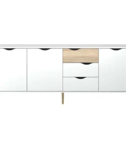 Pemberly Row Mid-Century Engineered Wood 77″ Sideboard In White And Oak