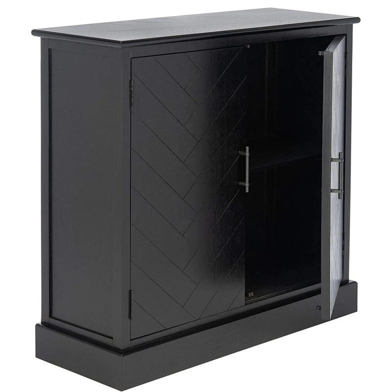 Decor Love Classic Sideboard, 2 Doors Cabinet With Herringbone Pattern, Black