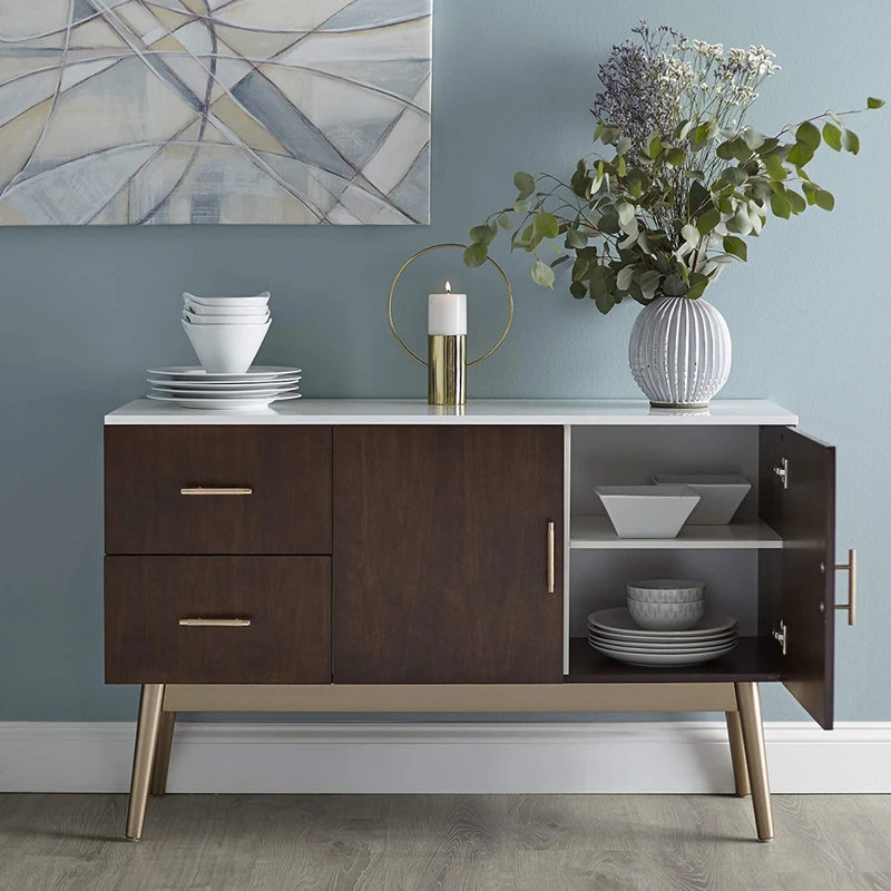Be the first to review “Decorn Mid Century Sideboard, Elegant Gold Finished Base With Walnut Cabinets & Drawers” Cancel reply