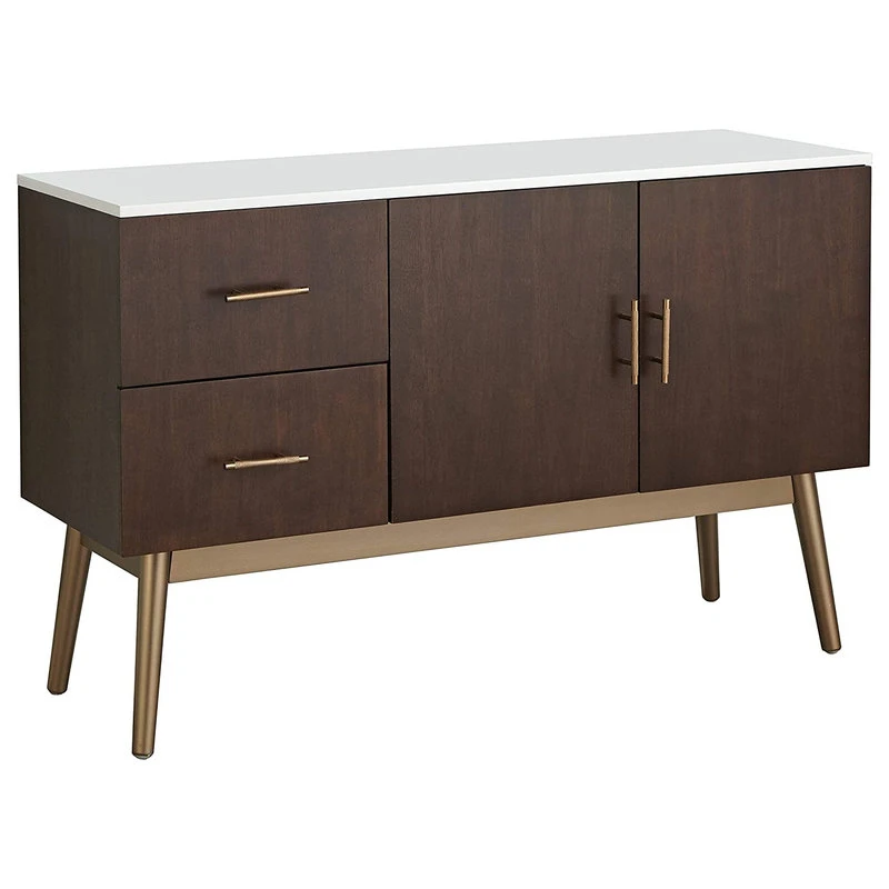 Decorn Mid Century Sideboard, Elegant Gold Finished Base With Walnut Cabinets & Drawers
