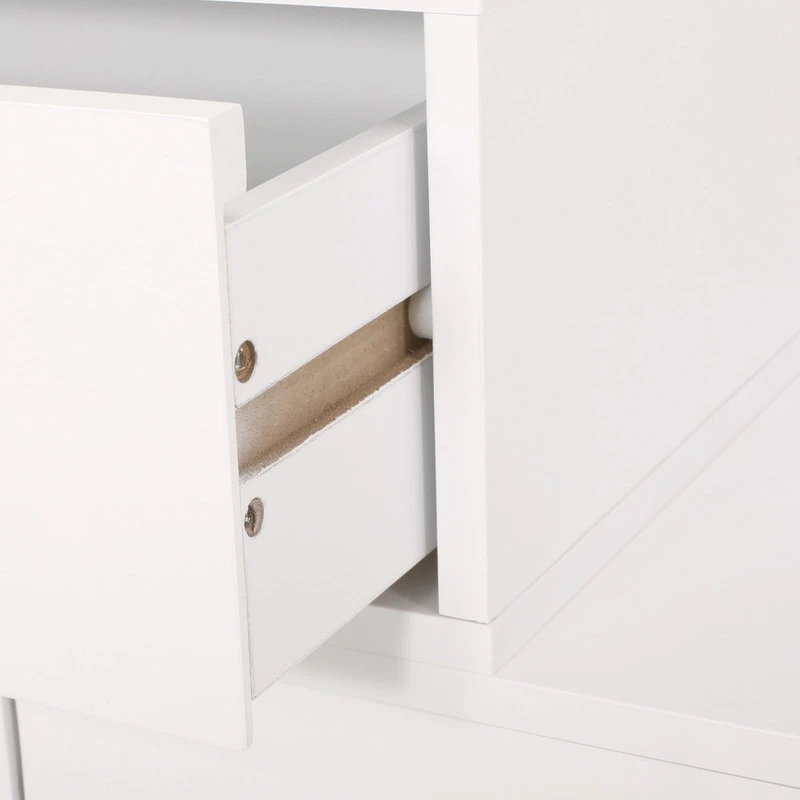 STORAGE SPACE: This accessory offers three staggered drawers for storing and organizing your items. These drawers are finished with matching wood handles for easy access to your items.