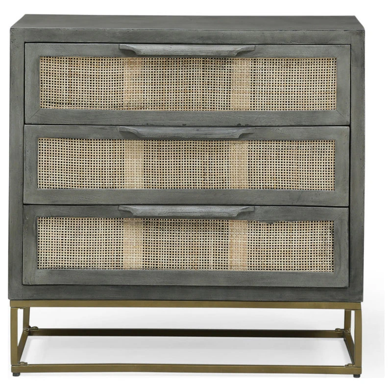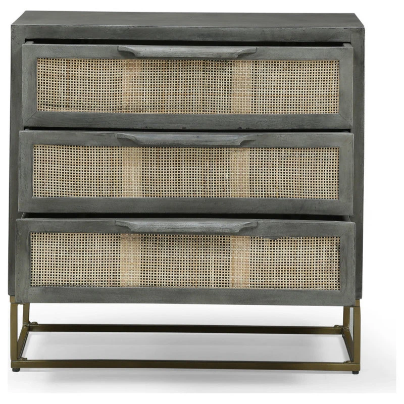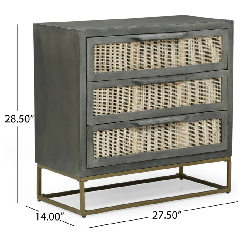 GDFStudio Lithonia Wolfe Handcrafted Boho Mango Wood 3 Drawer Cabinet, Gray And Natural