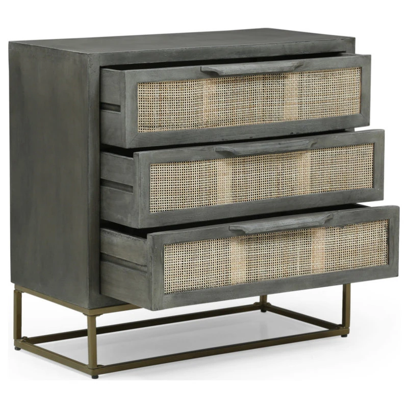 Upgrade the plain spaces of your home with a wonderfully charming piece that offers both style and function for all to admire. Featuring a stunning handcrafted structure for a one-of-a-kind design, our mango wood cabinet brings a sophisticated yet boho touch to your home using mixed materials. This cabinet is completed with outstanding wicker accents and three drawers, giving you ample room and style to organize your items. Blending seamlessly with your existing decor, this stand will bring out the best of your interior space.