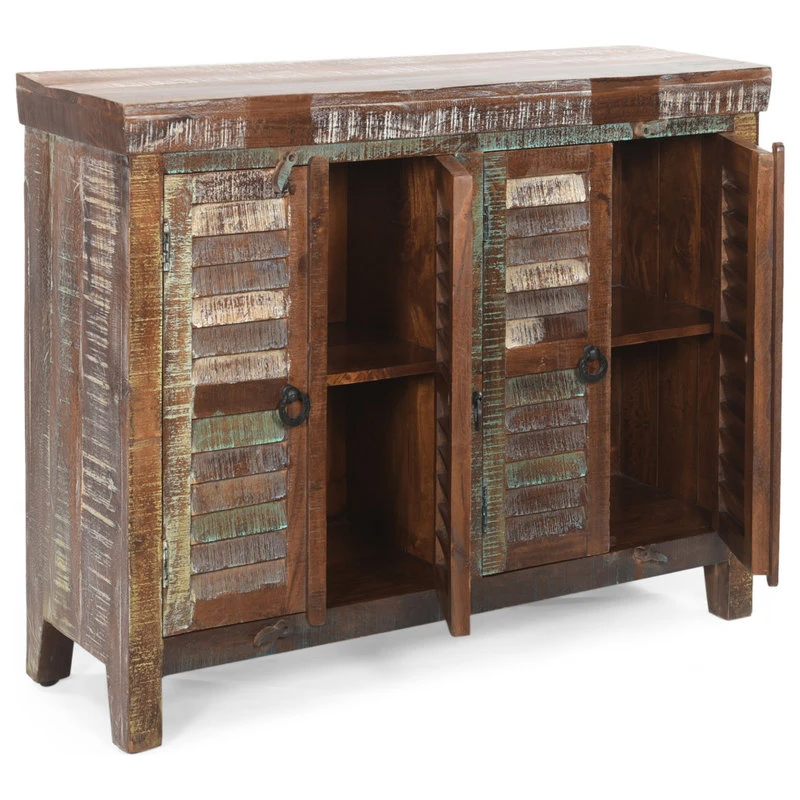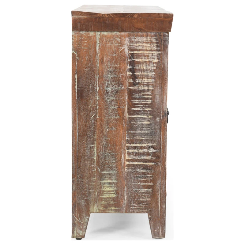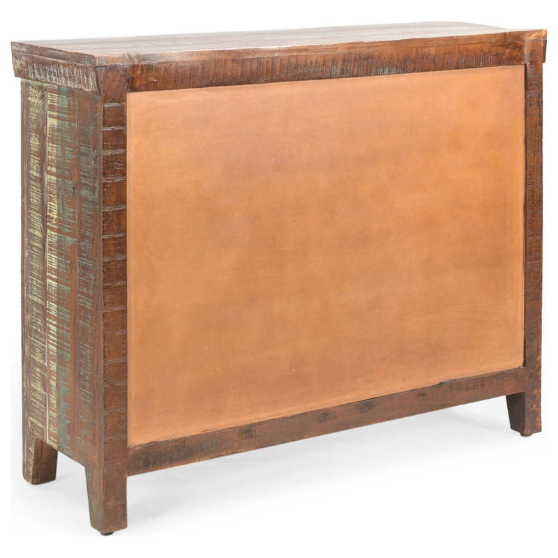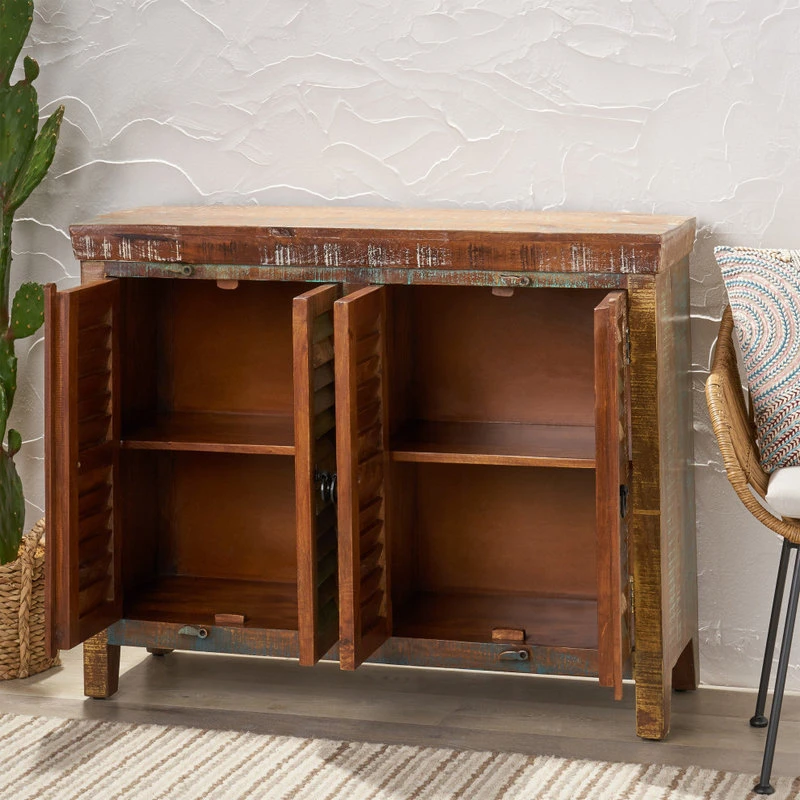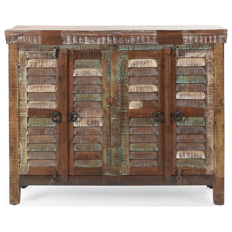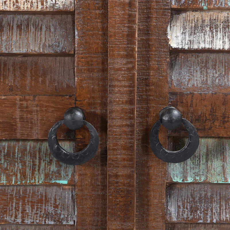 Accent your home with a gorgeous slatted cabinet that will hold all of your items in carefree style. Featuring beautiful mango wood for a one-of-a-kind design, this accessory brings a stunning boho look to your home, complemented by a hand-painted distressed look that promotes a delightful wood texture. This cabinet is completed with plenty of storage space, giving you ample room to organize your items. Blending seamlessly with your existing decor, this accessory will bring out the best of your interior space.