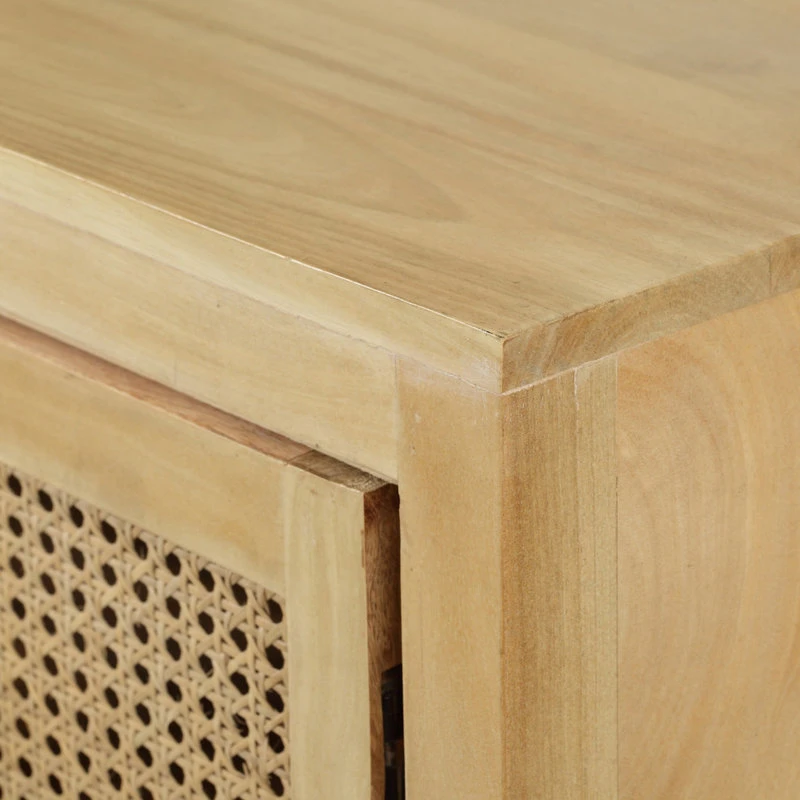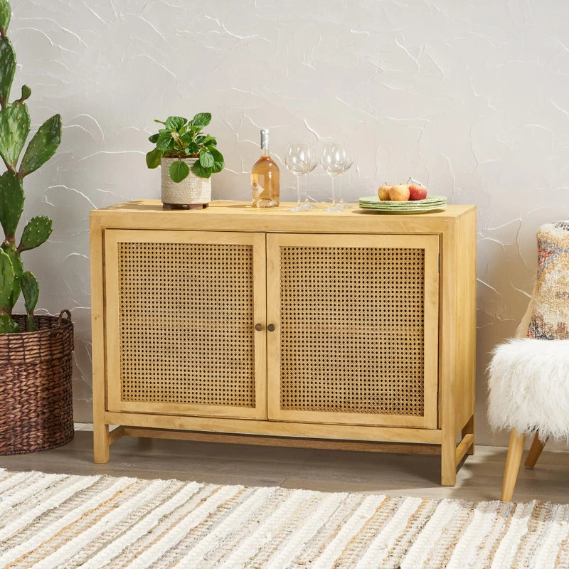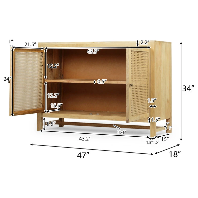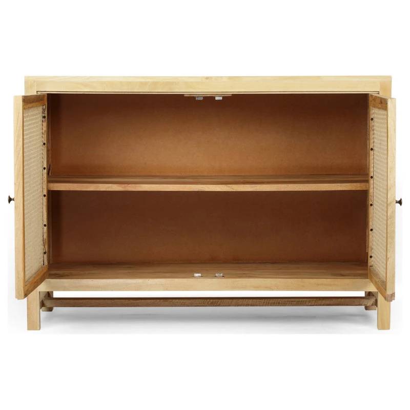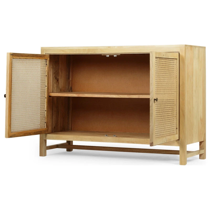 Furnish your foyer with a centerpiece that brings fun, diverse textures for a style that you can call your own. Featuring beautiful mango wood for a one-of-a-kind design, this handcrafted accessory offers a cheery boho look to your home, complemented by its wicker caning doors. This cabinet is completed with plenty of storage space, giving you ample room to organize your items. With a minimalistic yet outstanding design, our cabinet will easily enhance your decor, bringing out the best of your interior space.