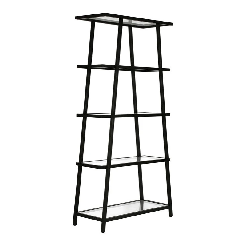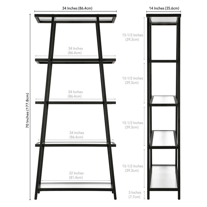 This angled bookcase stands at 70″ tall and is perfectly designed to fit into any space. Featuring 4-tiers of shelving for displaying your books, pictures, plants and more. It features staggered open shelves in the shape of a pyramid making it the perfect addition to your living room or bedroom to clear space and add visual interest to your space.