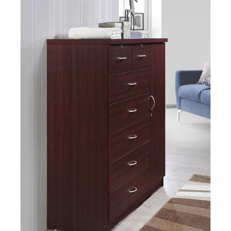 Hodedah Import Inc. 7 Drawer Jumbo Chest, With Additional Door, Mahogany