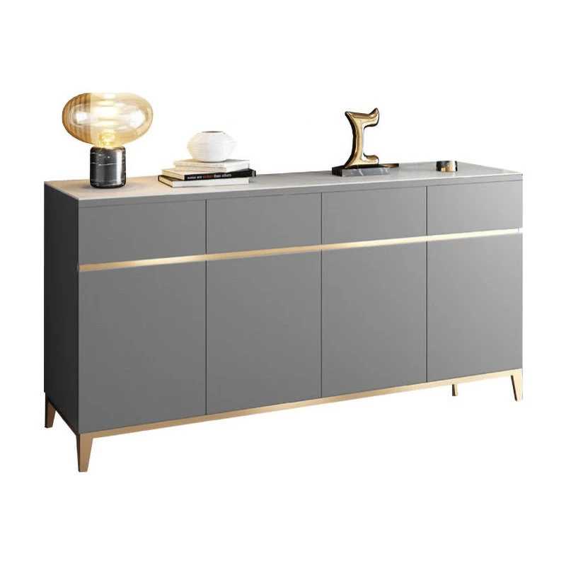 With stone tabletop and gold leg, it adds a luxurious touch striking statement to upgrading any existing home decor. Four doors open to reveal generous interior space, while 4 drawers for a variety of storage options. Made from solid wood, stainless steel, stone, this combines form and function.