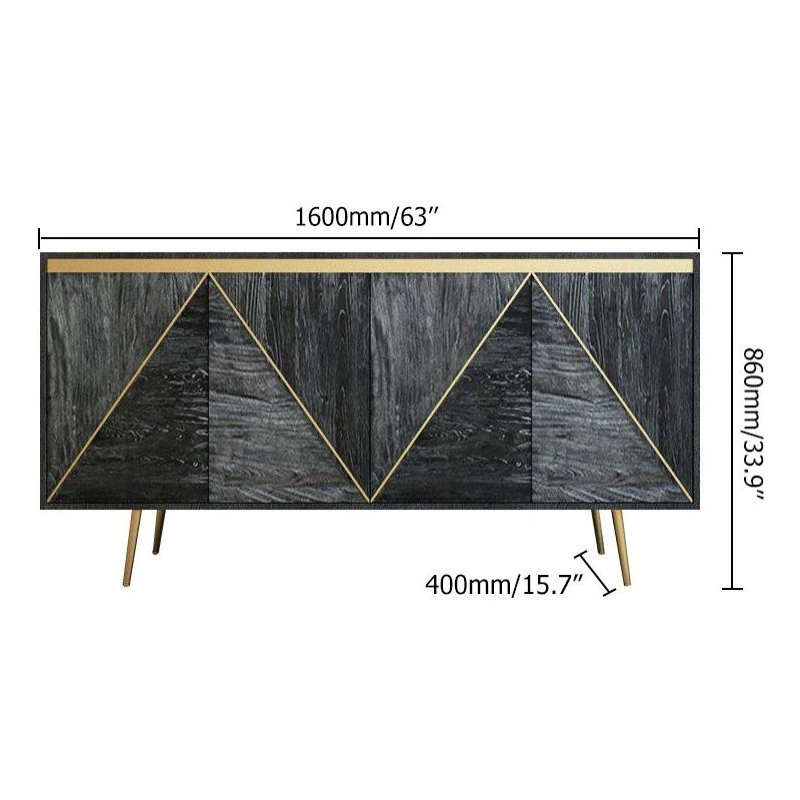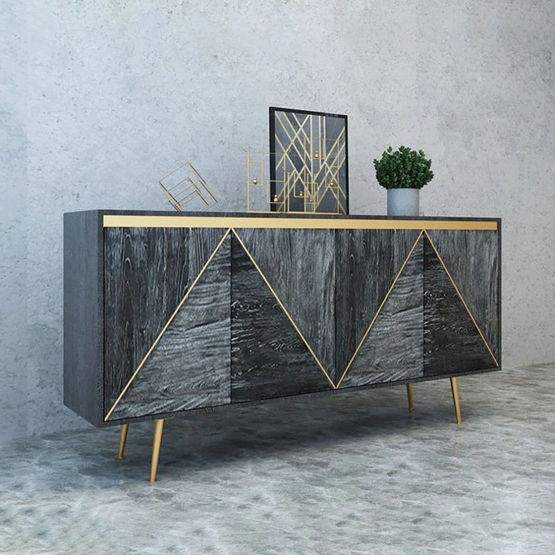 The gray and gold cabinet 4 doors accent cabinet brings stylish organization to any room. The cabinet’s triangle design over the decorative moldings creates a regal look that’ll give any space a sense of luxury and timelessness. No matter where you place this accent cabinet in your home, it will be one of the room’s standout pieces. In addition to its elegant beauty, the cabinet also offers ample storage space to keep items organized.
