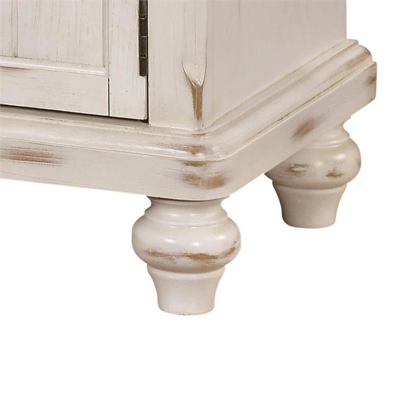 Equally at home in a seaside retreat or a modern farmhouse, this small chest offers convenient storage for an entryway, office, or even a dining room with charm to spare. The airy cream color features a distressed finish that allows beautiful wood tones to peek out from underneath. A pair of stylized shell cup pulls provide easy access to the top drawer. Below, matching plank-effect grooved doors open to a single fixed shelf for tidy interior storage.