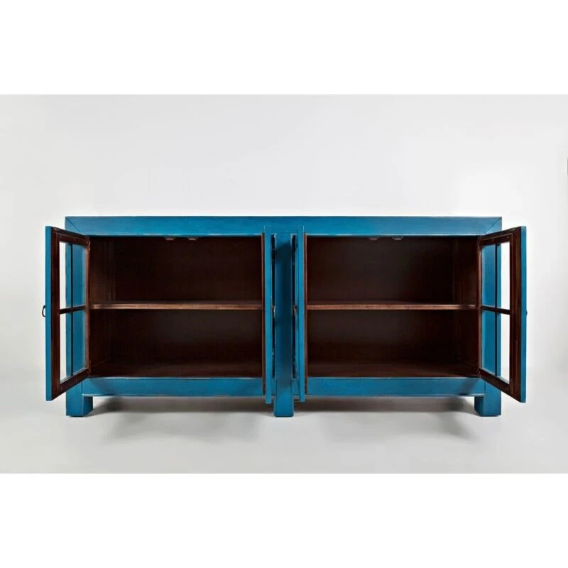 Aquitaine Accent CabinetWith its vivid azure finish and vintage patina, the Aquitaine Accent Cabinet makes us think of far away places like Santorini- some where warm and idyllic. Bring that into your home- and store some treasure while you’re at it. Product Dimension :32″H x 70″W x 18″D