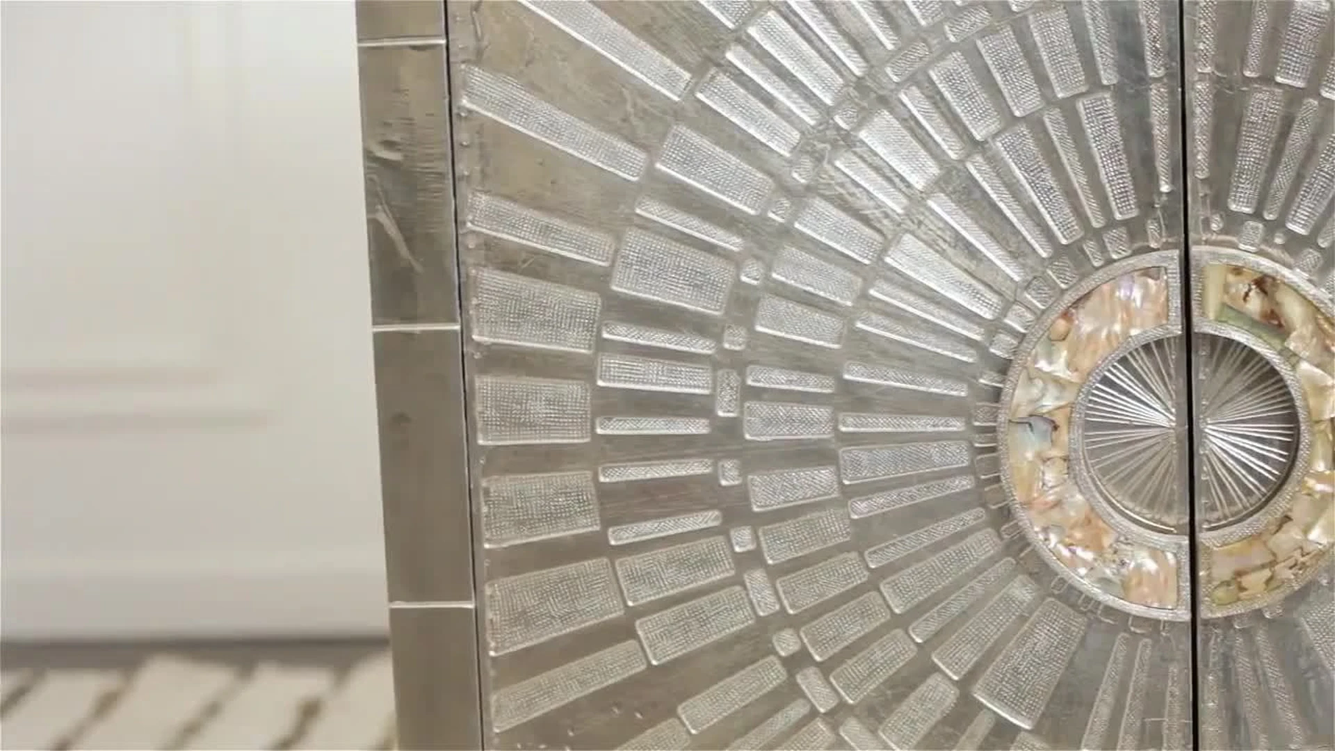 SKU: 18806 Category: Buffets & Sideboards Tags: Accent chest, Cabinet, Console, Credenza, Glow, Hand-stamped, Handmade, Metal, Minimalist, Modern, Silver, Storage