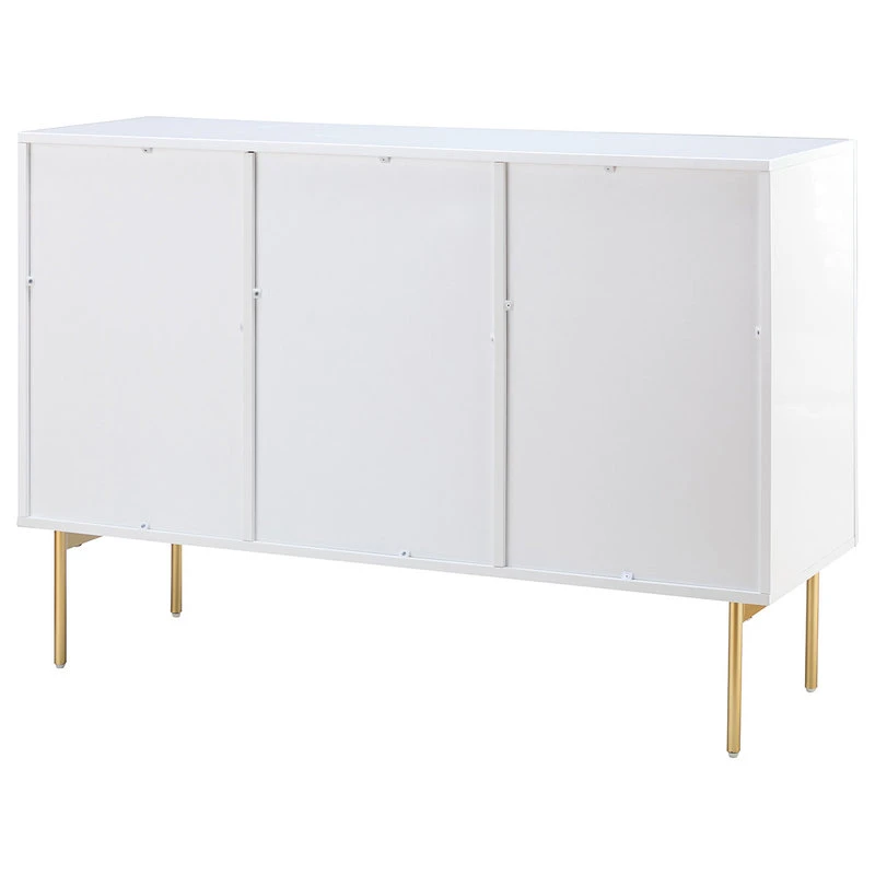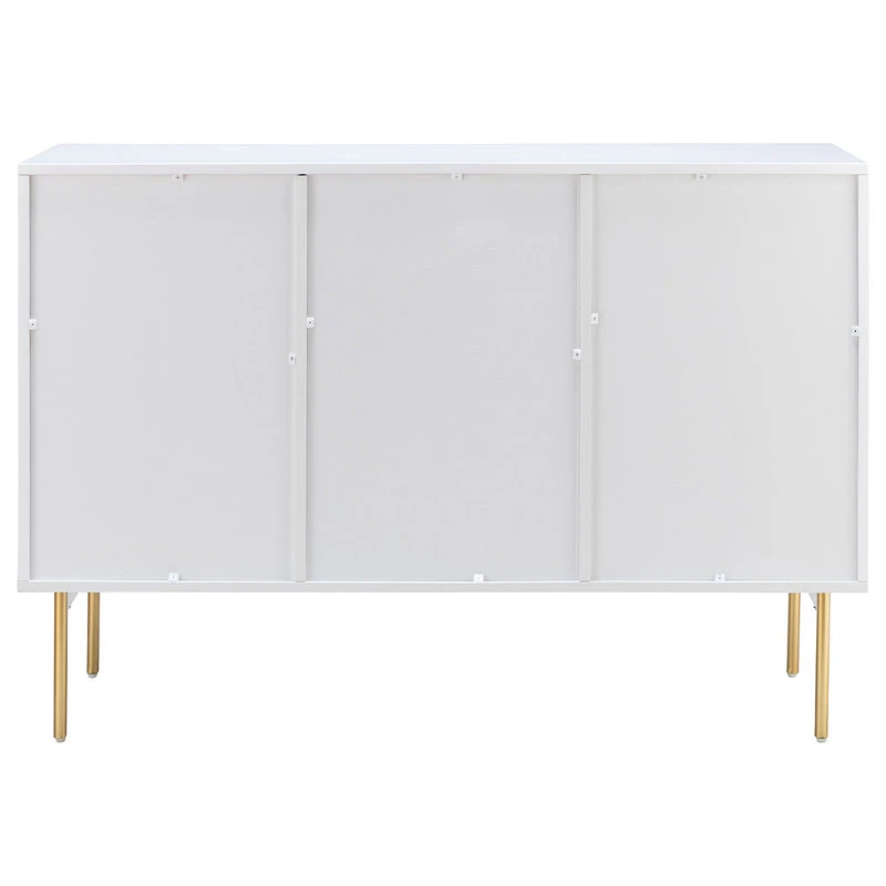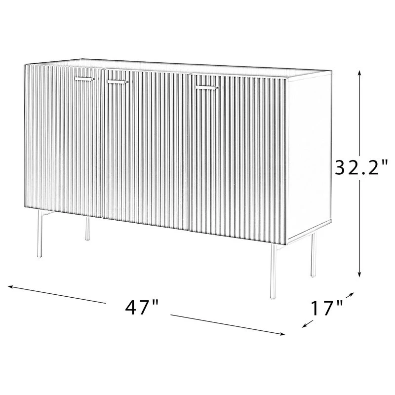 The sideboard adds a different modern chic to your home. The elegant design style matches any color scheme and decoration style. The sideboard has a spacious tabletop, which is convenient for placing decorations or daily necessities, and there are 3 doors and 3 removable shelves inside to put plates, cups, towels, shower gels, brushes, shoes, books, etc. Make your room tidy and orderly with this sideboard. Moreover, the metal legs and bar pulls add more flair to your home. This storage sideboard is made from a high-quality MDF board, which is very sturdy and scratch-resistant and does no harm to your body. It will not damp easily or deform like ordinary wood even after years of use. The sideboard can not only be used as a sideboard, but also can be served as a locker for books, shoes, bathroom stuff, and other items, even as a home decoration. It can be placed in the kitchen, living room, bedroom, hallway, or entryway.