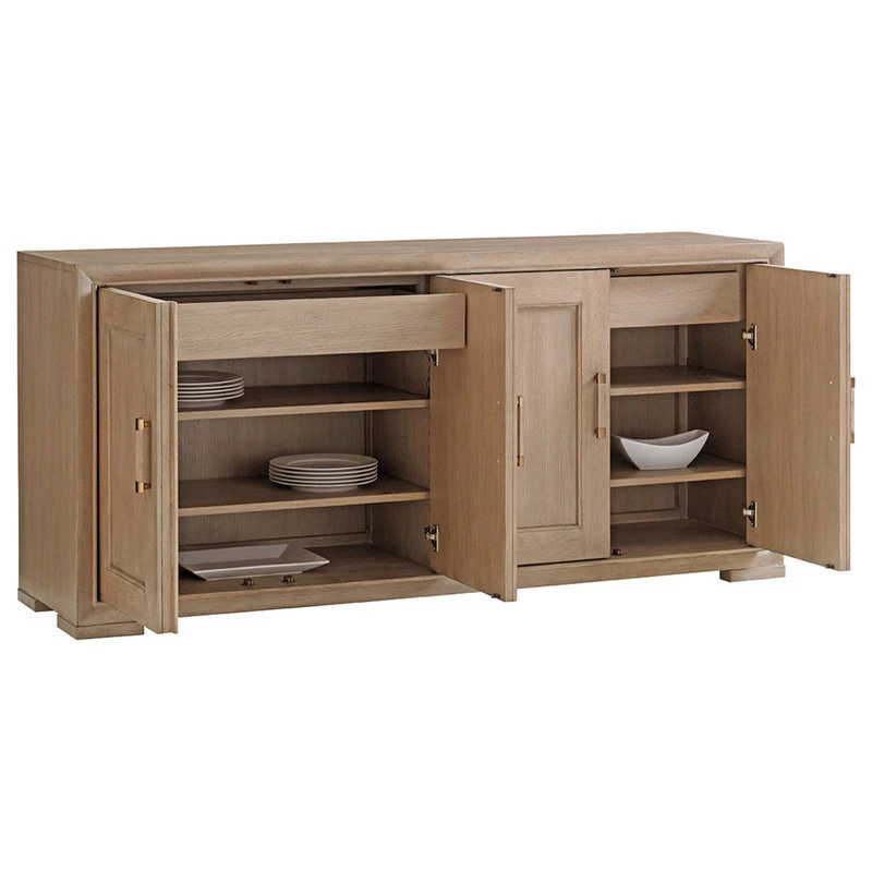 The generously sized buffet offers abundant storage, with a felt-lined drawer and two adjustable shelves behind each pair of doors. It goes well with the Studio Metal mirror and the Concorde dining table.
