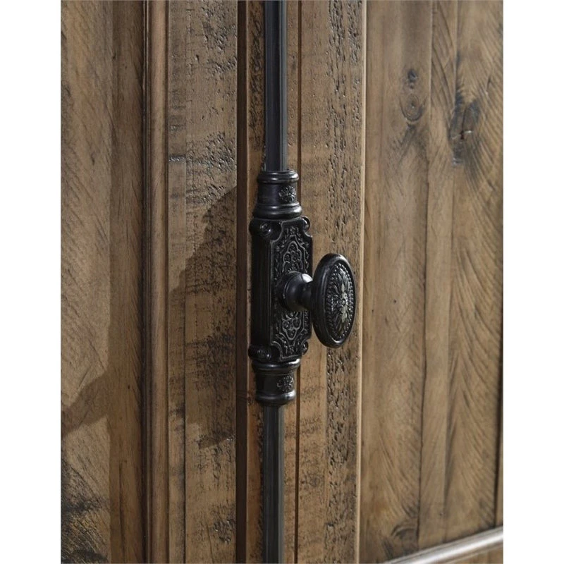 - Features two wood doors opening to reveal an adjustable wood shelf for additional storage