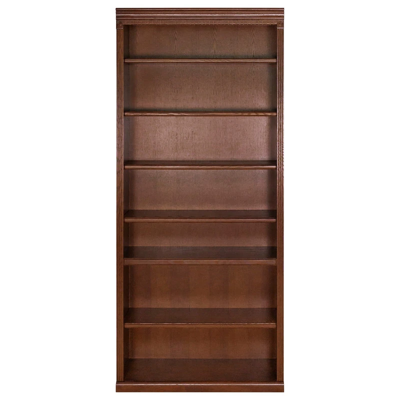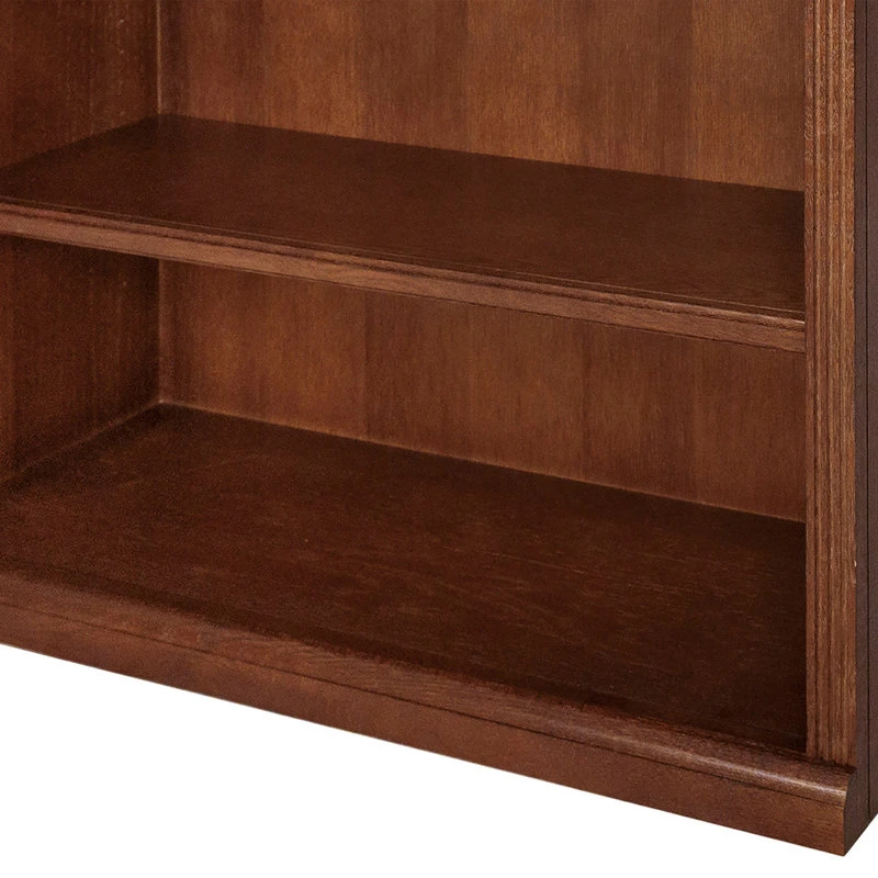 Handcrafted with timeless, classic styling, the Huntington Oxford office collection showcases the beauty of warm burnish brown hardwood solids and veneers. With a high attention to detail, the open bookcase features two fixed shelves for stability and five adjustable shelves for storage. The distressed burnish finish on the Huntington Oxford Open Bookcase presents a unique, worn appearance that will truly withstand time.