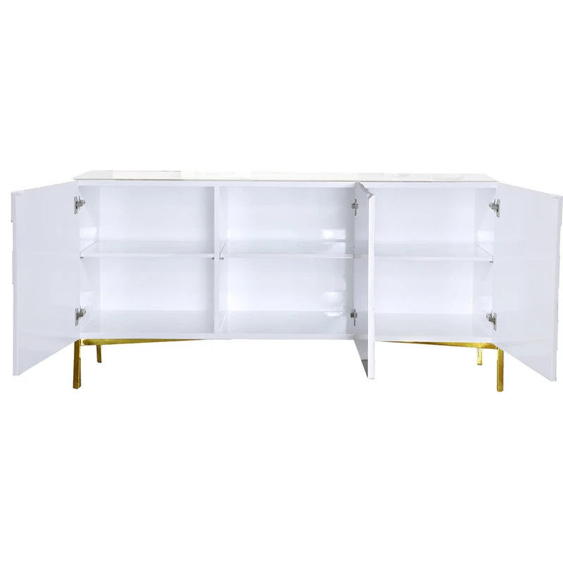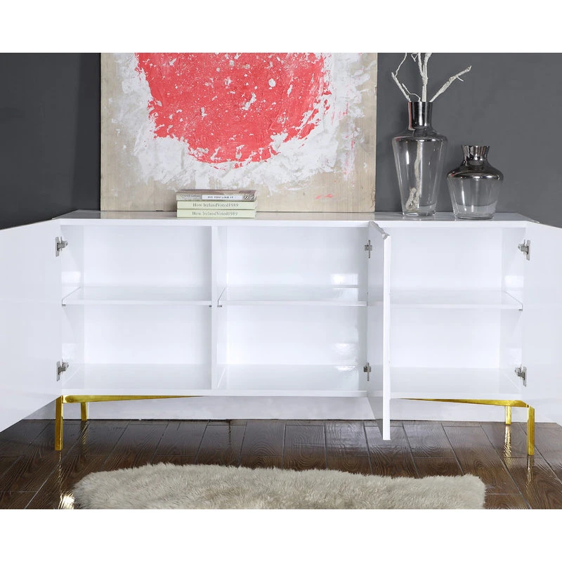 Meridian Furniture Collette Sideboard/Buffet, White, Gold Base