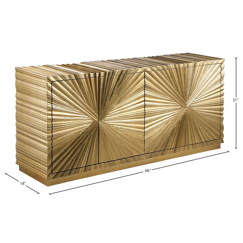 Elegant and eye-catching, the stunning Gold Leaf Golda Sideboard/Buffet from Meridian Furniture is the perfect addition to any space.