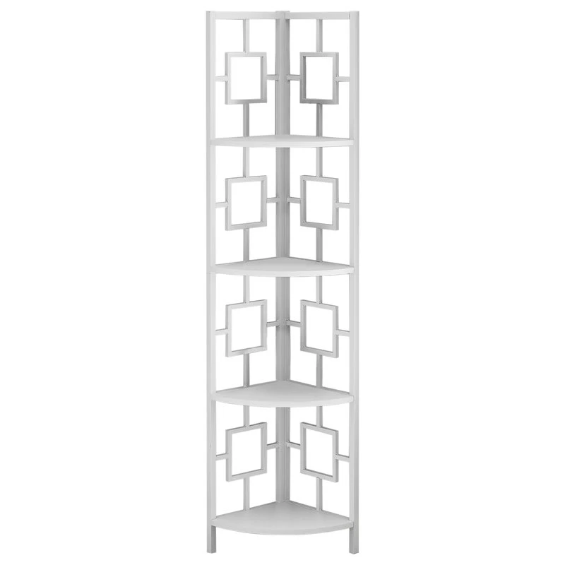 Monarch Specialties Bookcase 62″H, White, White Metal Corner Etagere